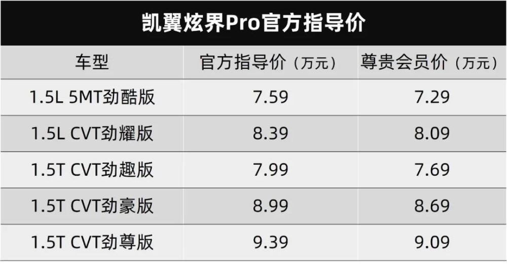 7月20日,快车报受邀来到四川宜宾参加凯翼炫界Pro的上市发布会,此次炫界Pro共带来5款车型,官方指导价为7.59-9.39万元,前5000名购车的用户,还可以享受3000元的优惠,尊享会员价为7.29-9.09万元。上市同时,官方也带来不少购车礼遇,具体如下:
