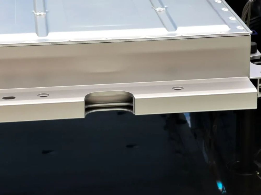 顺着前桥往后看,在ID.系列车型最核心的电池模组部分,其采用了坚硬的加强梁进行包裹。主持人同时表示,车辆的冷却水路位于电池包的最底部,这也是一种安全设计;万一托底刺穿电池冷却水路,即使冷却水有泄漏,但也不至于伤到电芯部分。