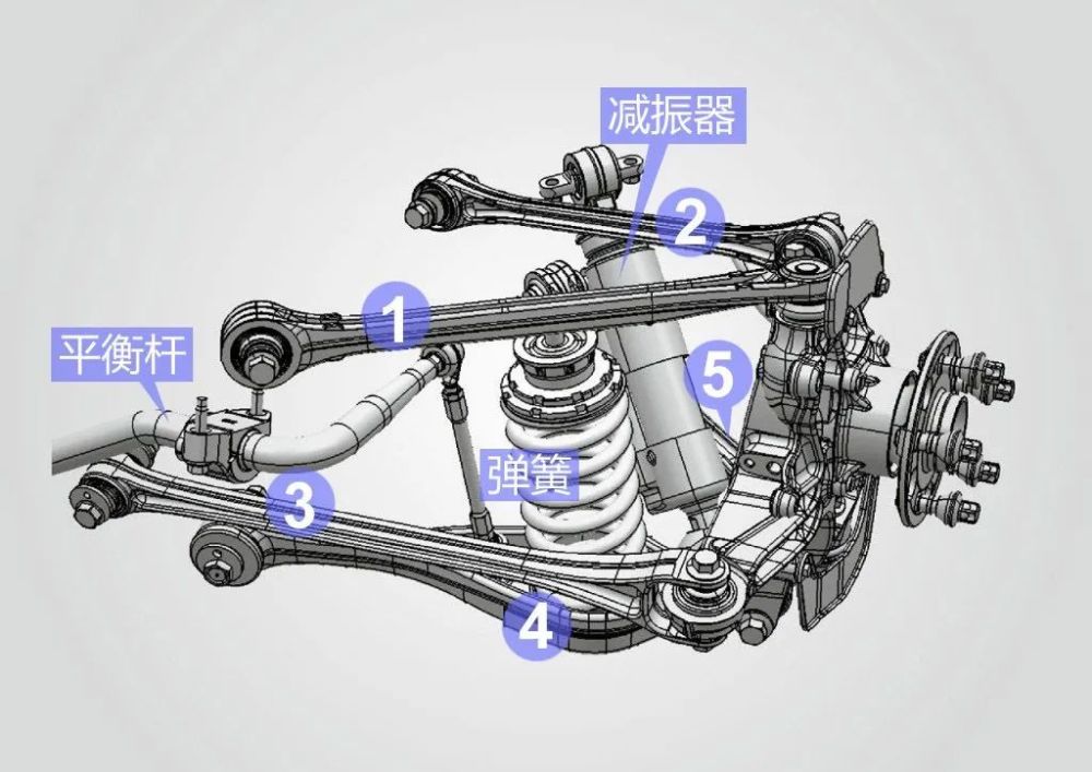 ▲ 典型的五连杆悬架结构