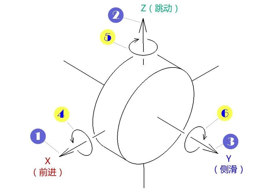 ▲ 车轮运动的6个自由度