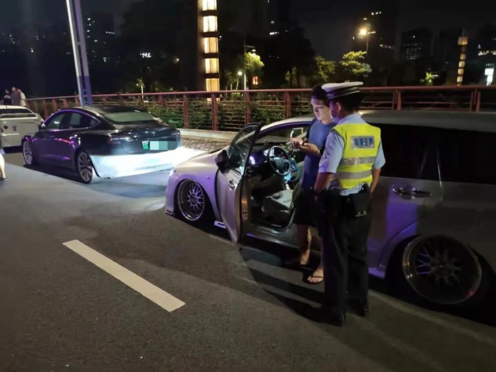 近日晚上22时许,在桂城南七路附近,时不时传出一阵阵改装车的轰鸣声。得知相关车辆正在该路段进行巡游后,民警通过智能交通高空视频设备对相关情况进行取证,迅速前往查处。