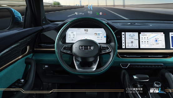 新车在内饰方面亮点颇多。首先,全液晶仪表盘、中央触控大屏以及副驾驶显示屏的三联屏设计直接将座舱的科技感拉满。新车车机系统名为“吉利银河os”,副驾显示屏可进行导航设置,并通过三指左滑将导航信息移至主仪表屏幕,真正做到了一位“领航员”应尽的义务。