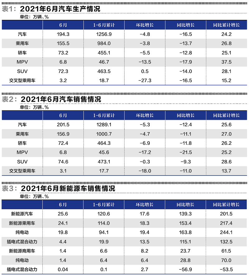 根据中国汽车协会发布的数据,2021年6月份,广义乘用车产量同比下降13.7%,环比下降3.8%(4月份环比3月份下降9%,5月份环比4月份下降5.7%)。进入2021年二季度以来,乘用车已经三个月产量下滑。