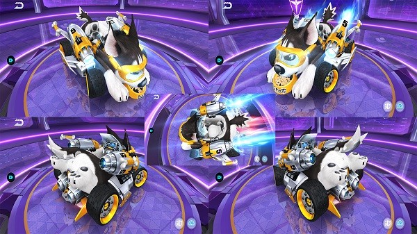 A车疯狂二哈主色调为黑白色,呆萌逗趣的二哈造型赛车,采用新一代仿生科技研制而成,眼神充满着智慧的光芒,专属的叼狗盆动作真实灵动,活用自己的“拆家本领”为车手在赛道上,拆除一切障碍。