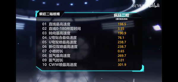 从六维性能图来看,疯狂二哈各项属性均非常优秀,其中转向能力极其突出,搭配实用的赛车特性,是赛道上的疯狂二哈,惊动全场。