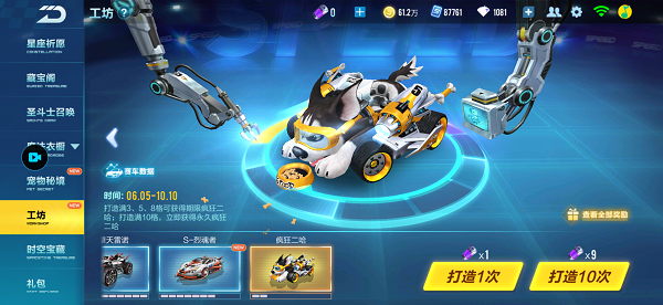 A车疯狂二哈可通过可在寻宝-点券工坊中打造获得,打造满3、6、9格可获得期限疯狂二哈;打造满10格,立即获得永久疯狂二哈。