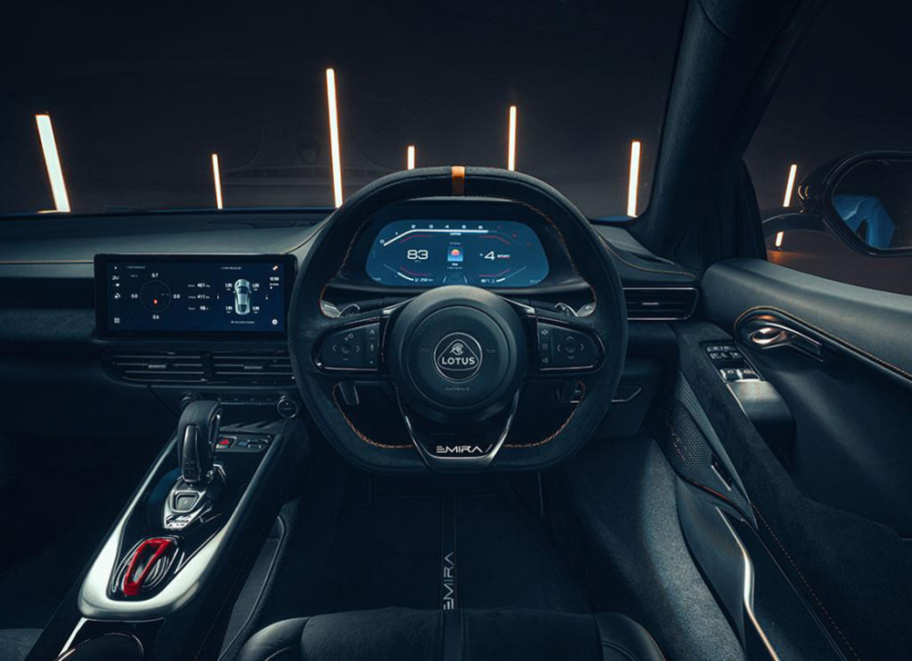 车内布局还是路特斯一贯以来的简洁设计,不过由于定位要更高端,目标车型是保时捷的718,所以不会使用Elise那种毛坯装修。基本的液晶仪表盘、中控多媒体触摸屏、多功能方向盘还是一应俱全,而且在实用性方面表现也可圈可点,中央操作台区域设置了两个杯架,电子挡把的加入也让下方多出了一块容量相当不错储物空间。