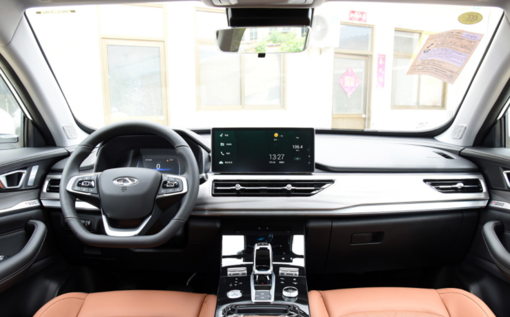鲲鹏版车型的中控台上部分为搪塑材料,中间装饰大面积水波纹材质的银色饰板,上方搭载悬浮式显示屏,智能车机系统又让这款车可以实现360度全景影像,车联网,语音识别,卫星导航,手机互联映射等多种功能。另外,奇瑞还在这款车的前后排共配备三个USB接口,给手机充电足够方便。