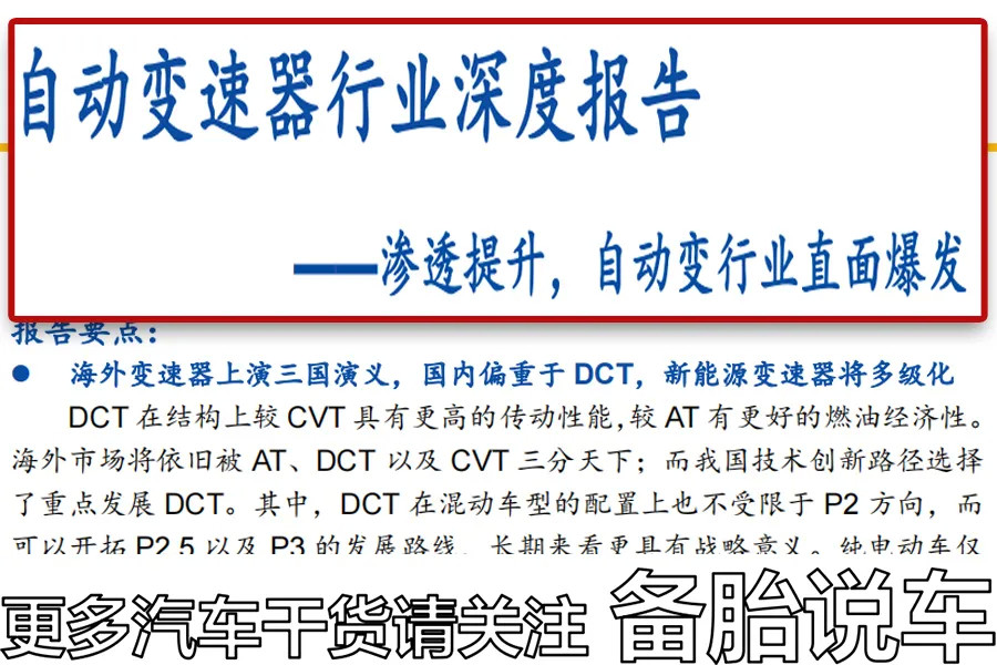 前面提到过的行业研究报告有讲过的:不少整车厂,比如说大众,为了打破爱信在AT变速箱上的掣肘,都在积极地研发DCT。