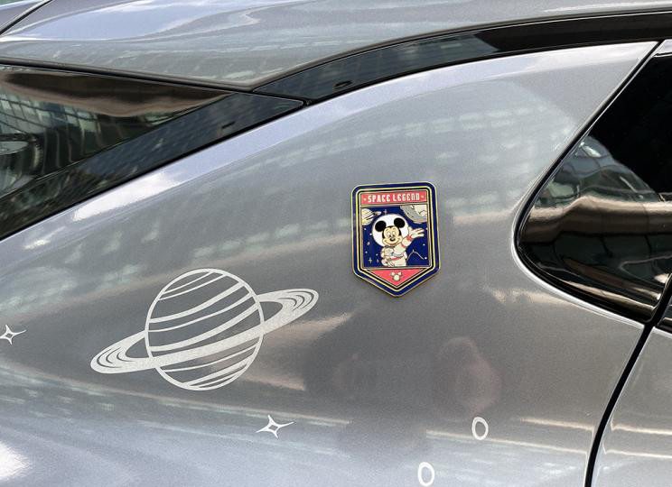 新车将提供三种车身颜色,车身表面覆盖有大量的贴花,大多是太空元素,另外在车身的C柱上有一个米奇身着太空服的徽标,很是亮眼。就连轮毂盖也用上了米奇的标志。不过外部的变化不算多,内饰的变化很惊艳。首先是中控台、方向盘等处使用了Alcantara材质包裹,独有的配色加上米奇徽标,气氛到位。头枕同样是米奇头像。
