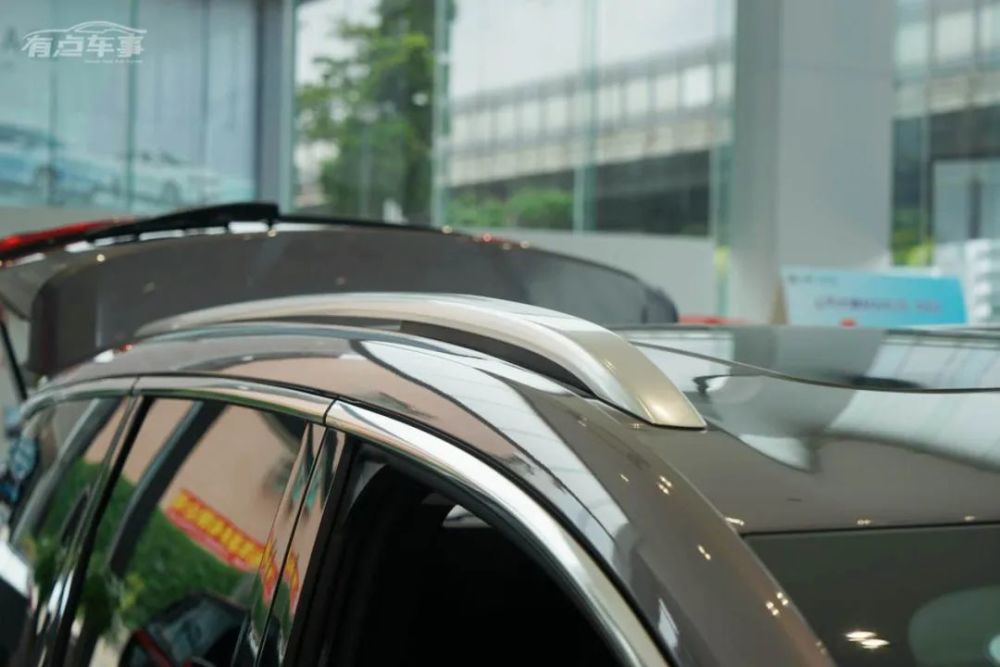 银色的行李架美观的意义大于实用价值,装备了行李架后让车顶不再有单薄的感觉,在造型上更加立体。