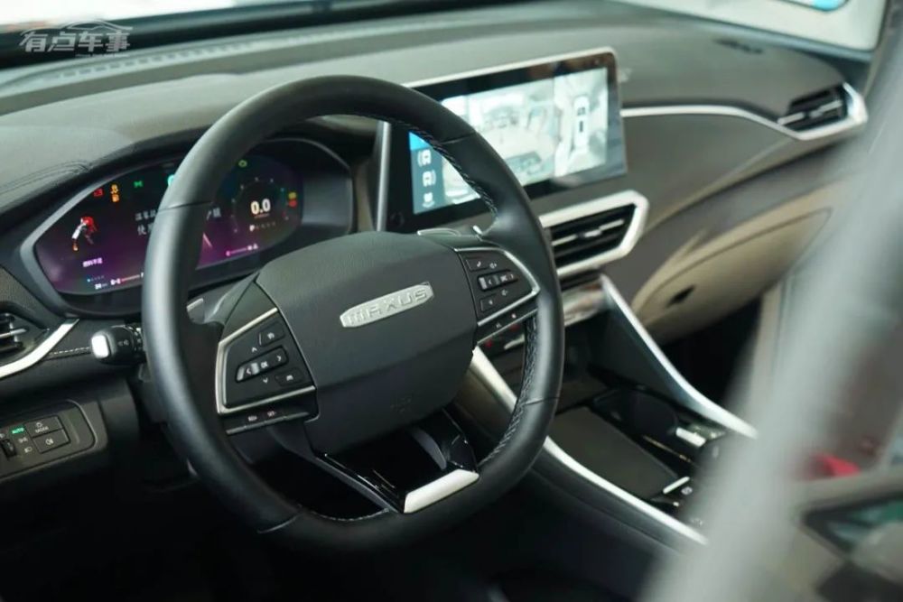 内饰设计上可以说是繁简有序,中控台并没有复杂的按键排布,连传统的排挡杆也不见踪影。而大尺寸屏幕与液晶仪表盘算是有牌面的配置。