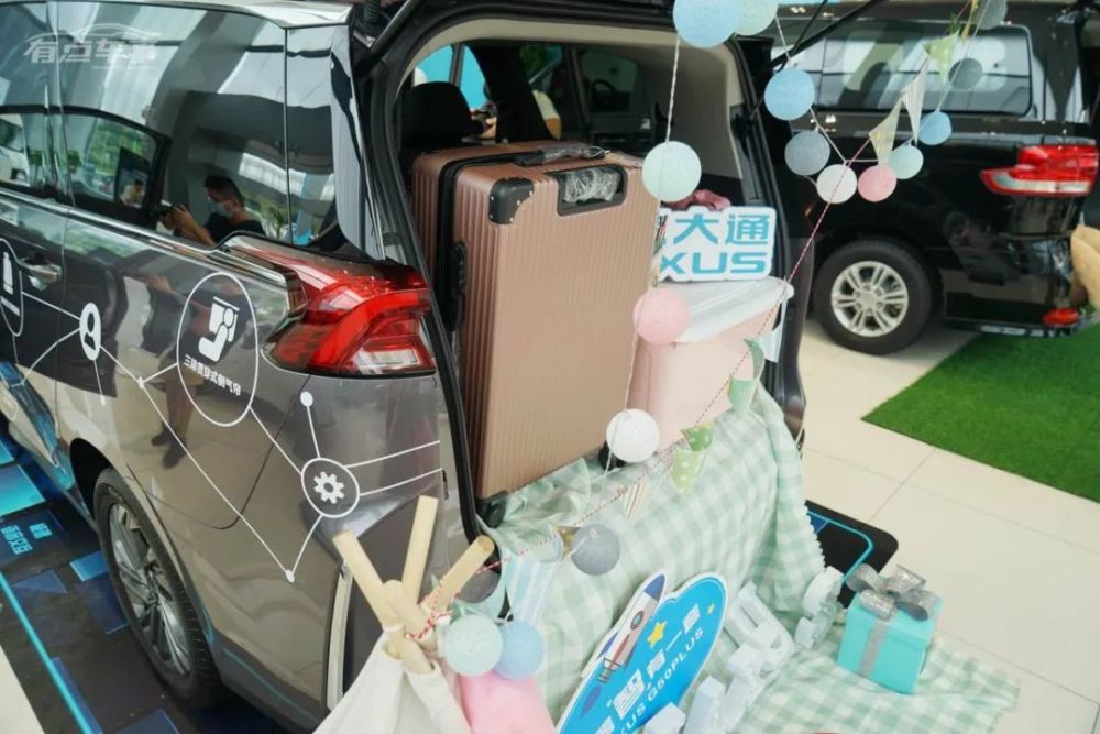 不得不说经销商在布置展厅时,还是花了些心思,在场景布置上也比较符合G50 Plus的实际使用需求。在不放到后排的前提下,G50 Plus还是能轻松容纳一个28寸的登机箱,在满员的情况下依旧有不错的装载能力。有需要还可以将第三排放倒,获得一个方正的载物空间。