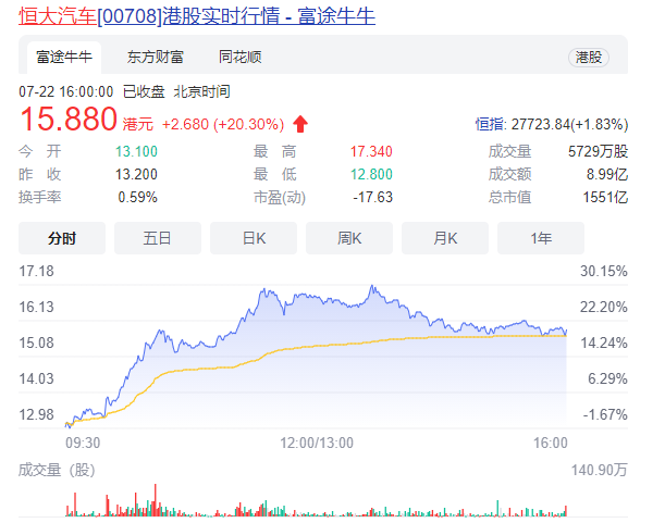 受FF上市的影响,持有FF 20%股份的恒大汽车率先在港股迎来狂欢。截至收盘,恒大汽车涨超20%,一扫前几天的颓势。