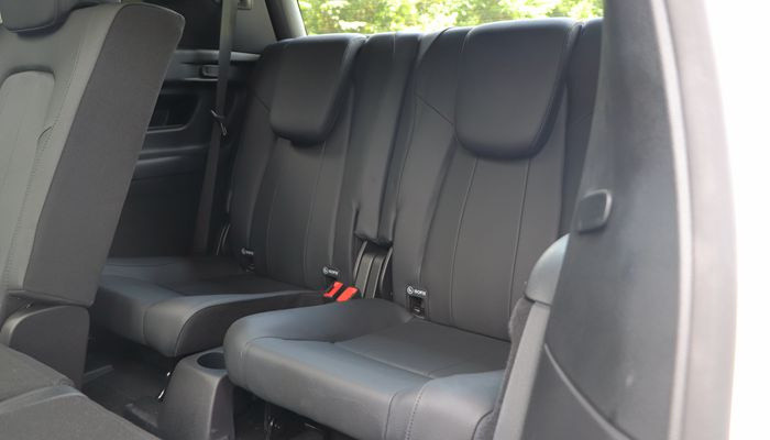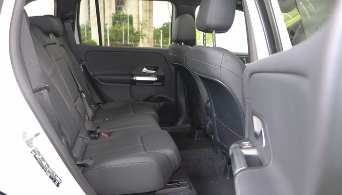 对于绝大多数用户来说,奔驰GLB的常用形态为5座。在5座布局的情况下,奔驰GLB的乘坐空间表现还是能够令人满意的,无论是头部还是腿部,表现与宝马X1都差不了太多,日常的使用表现还是相当不错的。和宝马X1一样,奔驰GLB的后排座椅长度也有着过短的问题,实测坐垫长度只有45mm(较比宝马X1仅长了3mm),对腿部的承托效果还是不尽人意。
