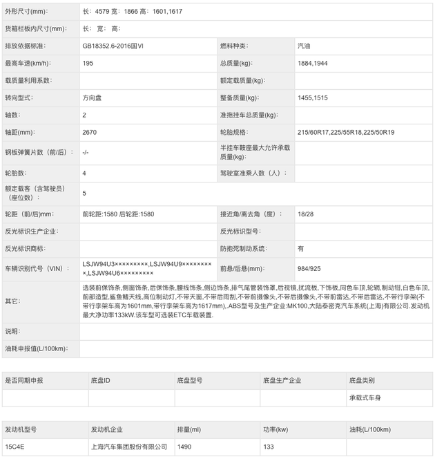 动力方面,新车搭载的是由上海汽车集团股份有限公司生产,型号为15C4E的1.5T涡轮增压发动机,该发动机最大功率为133千瓦。