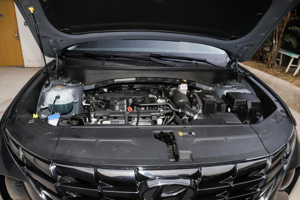 首先说一下两款车型的基本参数。北京现代第五代途胜L,车身尺寸4670*1865*1690mm,轴距2755mm。动力方面,第五代途胜L搭载了一款集成CVVD技术、全铝缸体、低惯量单涡管和电控泄压阀等众多黑科技于一身的全新1.5T直列四缸发动机,匹配7档干式双离合变速箱。这款1.5T发动机拥有着最大200匹马力以及253N·m扭矩的出色动力储备。要知道,很多车企的2.0T车型动力也不过如此。