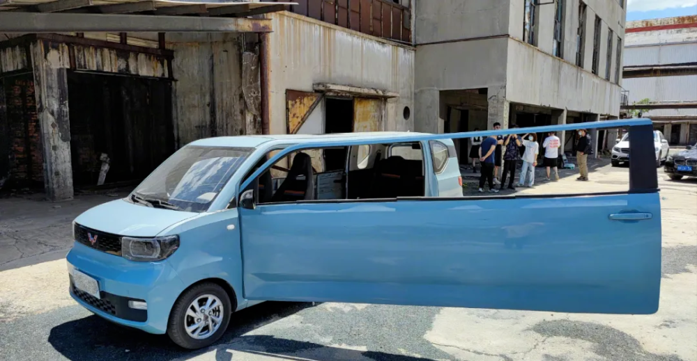 #五菱宏光MINI EV大家肯定不会陌生,它是目前卖得非常火的一款电动小车,但是这款小车在国内某地因为种种原因,不给它上牌的指标了,因此这辆4.61米的五菱宏光BIG EV便就此诞生!这辆加长的BIG EV出自国内的一家汽车媒体,虽然制造方法很简单,直接将普通版MINI EV中间切掉,焊上铁板就完事了,但是做完之后的样子,你还别说!还真有点那加长的味儿了!