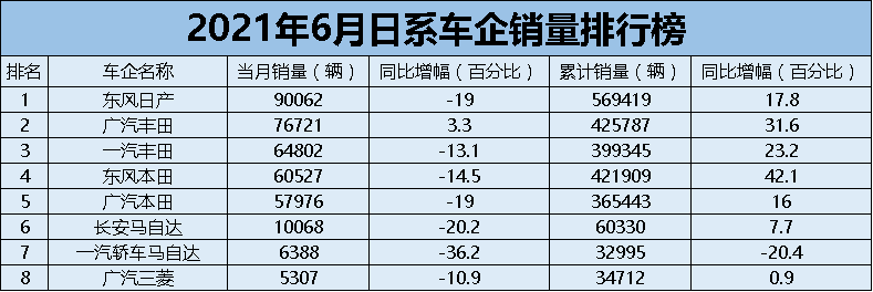 除“两田一产”外,其余日系合资企业中只有长安马自达月销破万,此前相传将与长马合并的一汽轿车马自达和广汽三菱上半年销量均只有3万辆左右。