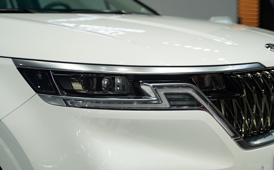 说到起亚嘉华相信很多人都没有听过,比较的冷门,但是相信大家了解之后会对新车有着全新的认识,新车的前脸方面采用了经典的家族式造型设计,品牌的辨识度比较的高,中网内部由纵横交错的网状镀铬饰条填充,而且周围还有着银色饰条包裹装饰,看起来十分的精致,而且两侧与熏黑的大灯组连接成一体,而且可以看到灯组内部的光源设计很个性,中央还有凸起的LED灯带装饰,搭配下方的大尺寸熏黑进气与棱角十足的雾灯,视觉冲击力很强。