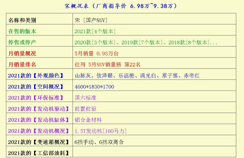 车型一:宋(建议零售价低至6.98万起)