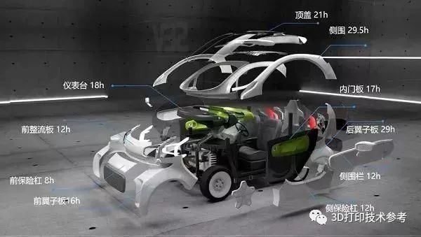 XEV旗下LSEV电动汽车的每个部件采用3D打印需要花费的时间