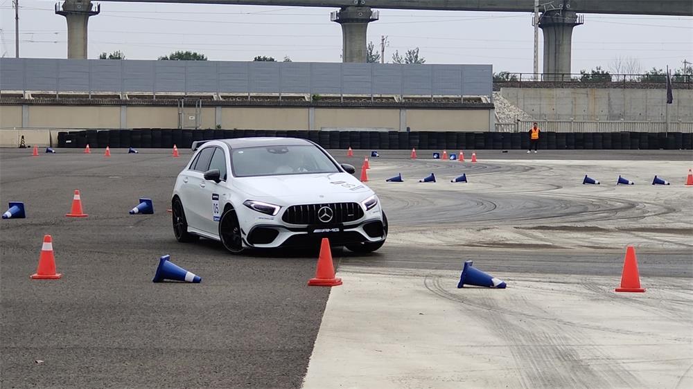 同时专属于AMG的高性能适时四驱系统,配有影响迅速的机电式多片离合器,可以实时检测车身状态,进行扭矩分配,同时再加上AMG专属的车速感应式转向系统,可以为驾驶员提供更精准的转向,因此在整个场地体验中,AMG A45作为一款紧凑级两厢车,所展现出的灵动,绝对是家族中独一无二的。