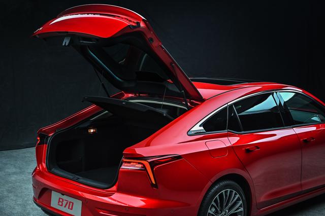 除了空间方面的优异表现,全新第三代奔腾B70其它方面的产品力同样可圈可点。外观上,新车前脸采用扁平化的多边形进气格栅,内部采用矩阵式镀铬排列,带来了极强的视觉冲击力。两侧LED灯组的设计灵感源于中国古代兵器“戈”,与格栅装饰融合在一起,极其富有层次感的同时也给整个前脸带来了很高的辨识度。车身侧面,从C柱开始下压的曲线伸展至车尾,弧度流畅自然,同时立体感十足,搭配大尺寸运动轮毂让整车充满蓄势待发的气势。全新第三代奔腾B70采用了隐藏式的门把手,可以电动伸缩,营造科技感的同时优化了车身侧面流线造型,助力车身带来较低的风阻系数。尾部造型简洁大气,采用了点阵式立体贯穿尾灯,下方为奔腾的“BESTUNE”英文字母标识,搭配大口径双边共两出排气很有高级感。总之全新第三代奔腾B70的外观设计是非常用心的,设计元素很是丰富,于细节上凸显精致。