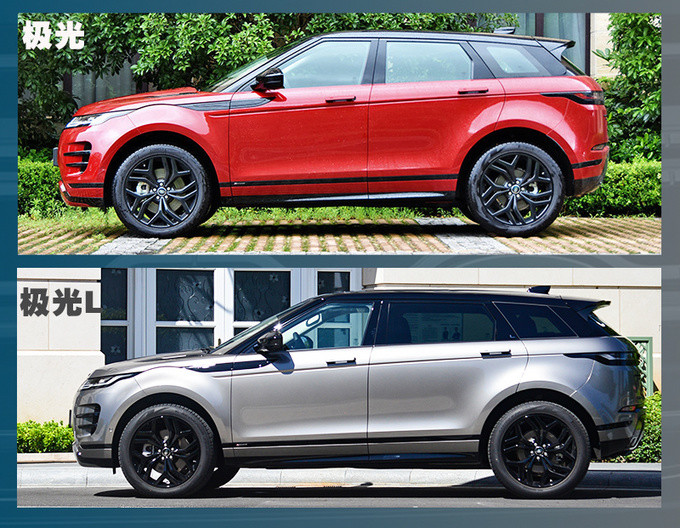 对于路虎车型不是很了解的朋友,从侧面还是很难一眼区分出标轴和长轴车型,从数据上来看,极光L所加长的160mm全部被用在了B柱往后的位置,此时后门在视觉上是要比前门更长,和极光正好反了过来。当然,C柱上的L小铭牌是能最快区分的标识。