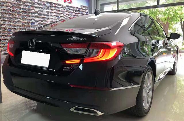 从尾部的设计来看,你能看到浓浓的本田元素。大C字造型的尾灯配备上双出的镀铬排气管以及微微上扬的运动尾翼,颜值感很不错。而且尾翼和快背式车顶衔接得非常到位,一体感很理想。尾灯采用的是led的光源,点亮后的效果就像两条光带一样,雾化的同时也很有立体感。第十代的雅阁定位是一辆中级车,长宽高分别为4893/1862/1449mm,轴距是2830mm。