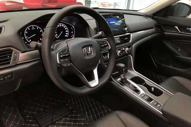 让我们进入车内来了解一下,可以说本田的内饰是很多网友吐槽最多的地方,感觉本田就不会做内饰。事实上也确实是这样的,本田雅阁的整体内饰设计比较的一般,采用了全黑的设计,内饰给我们带来了浓浓的塑料风格,没有太多的档次感。中控部分搭载了7英寸的普通液晶屏幕,不支持触控,如果配置高一些的可以达到八英寸,但总体来说车载交互系统不是很出色。至于便利性的配置,本田雅阁最大的特色就是蓝牙电话。此外,这辆车子还拥有银色面板,机械挡把,多功能真皮方向盘。总体来说没有什么惊艳感,但是好在也特别的实用,但是这种实用有些年代感。