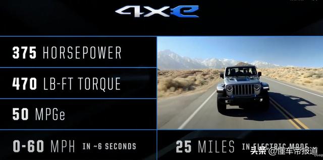 [懂车帝原创 产品] 9月3日,Jeep正式发布了牧马人4xe车型,该车搭载2.0T发动机与电动机组成的插电混动系统,匹配容量为17千瓦时的镍锰钴锂离子电池组,纯电行驶里程为25英里(约40公里,测试工况未标明)。官方表示,牧马人4xe将于2021年初在欧洲、中国和美国上市。