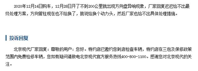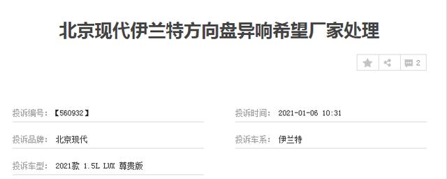 俗话都说:“人无完人”,汽车同样如此,目前在售的2021款现代伊兰特尽管优点很多,但是,依旧少不了车主们对它的投诉,其中,转向系统异响成为了典型投诉问题之一。对于这些存在的问题,还希望北京现代能够引起重视。