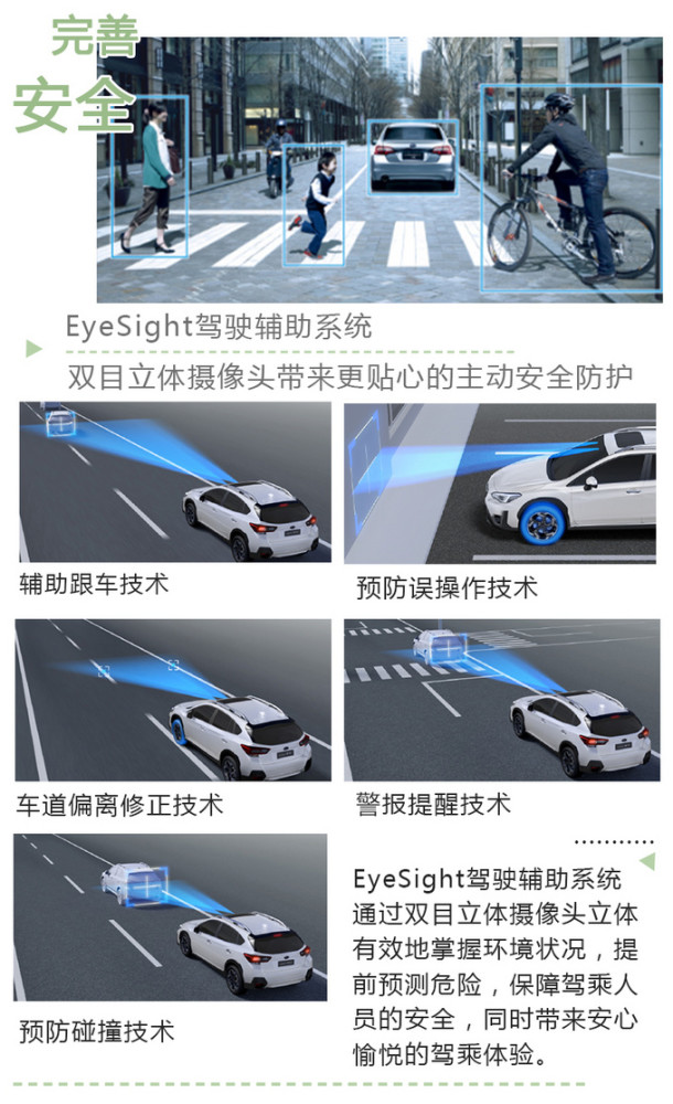 路上驾驶,安全肯定是第一位,EyeSight驾驶辅助系统整合了极为丰富的主动安全配置,保障驾乘人员的安全,同时也能带来安心愉悦的驾乘感受,总结来概括分为五个方面。