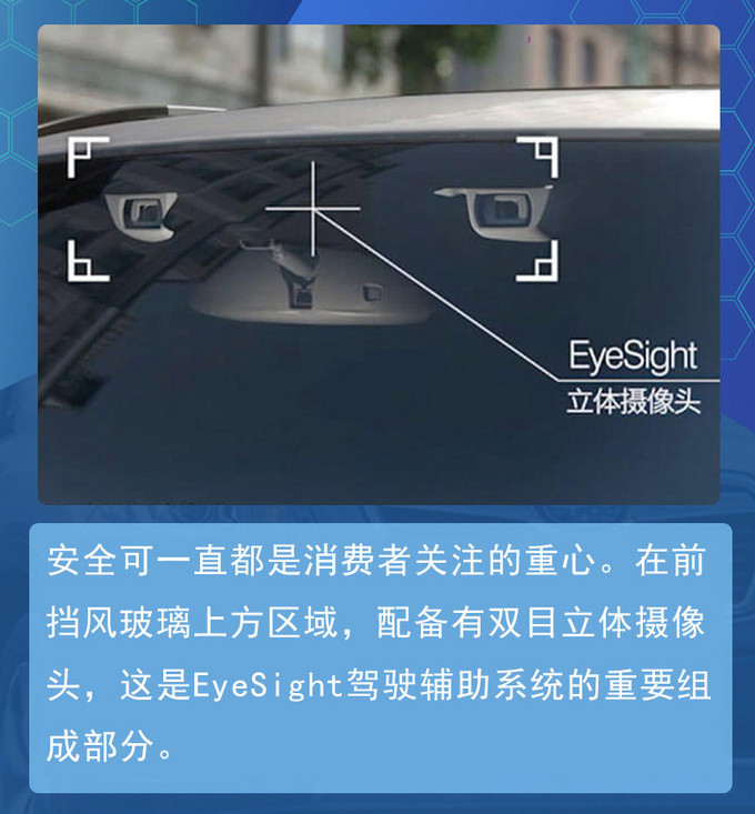EyeSight驾驶辅助系统的功能性十分丰富,当车辆即将发生意外碰撞前,如果驾驶员未能及时察觉采取制动措施,那么车辆将会自动采取主动制动的方式,来防止交通意外事件的发生。除此之外,全车速自适应巡航控制系统(ACC)、起步油门误操作预防功能、后方盲区监测预警系统(SRVD)、车道偏离修正辅助等功能也都有配备,全方位的保护乘客的人身安全。