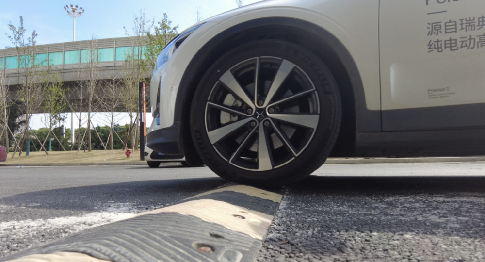 在过一些大冲击和破损路面时,滤震做得非常到位,冲击波峰被削得非常平滑,不会有难受的被顶起的感觉,另外底盘冲击的声音也被压得很低,而这恰巧是很多厂商没做到位的地方。许多时候我们只谈滤震性能而忽略了冲击的噪音隔绝,但是消费者往往会将这两者关联在一起,哪怕滤震做得足够好,但如果声音被放大,主观上也会觉得滤震比较差,这点在极星上就匹配得非常好。但这带来的坏处就是路感相对来说比较模糊,由于波峰被削弱得很平滑,导致整个路感像被盖上了厚厚的一层棉被一样,另外方向盘上也没有什么路感,不知道如果加4万块钱换上一套20inch的钢圈和PS4的轮胎会不会更好一些。
