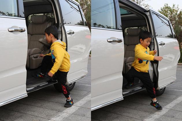 儿子今年5岁半,110cm的身高无论是面对轿车、SUV还是别的MPV,上下车都一直是个困难且具有危险性的动作(每当回想起那次他不小心从索兰托上掉下来摔在马路牙子上的经历都非常扎心)。而对于奥德赛,超低地板的设计使得小朋友可以实现一步登车,再也用不着爬上爬下。