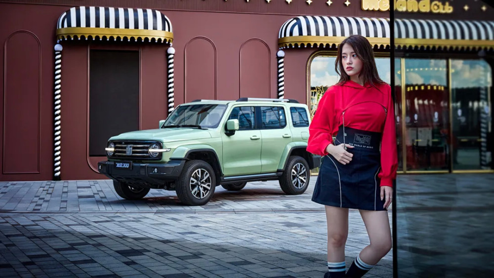 首先来讲一讲这台车在设计上和之前的越野版有什么区别。城市版依旧是延续了之前坦克300硬朗的车身设计,车身上最明显的区别是增加了“颜值粉”、“种草绿”这两种更潮流的配色。