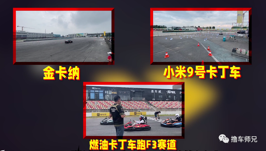 分别是金卡纳、小米9号卡丁车、燃油卡丁车跑F3赛道。