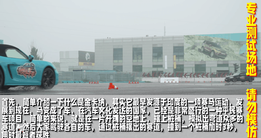 然后大家驾驶各自的车,通过装桶摆出的赛道,撞到一个装桶加时3秒,用时最短者获胜;