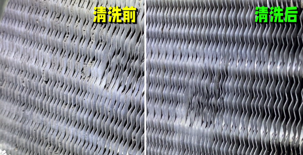 很明显蒸发箱散热片上的灰尘杂质都被洗掉了!