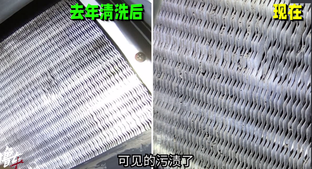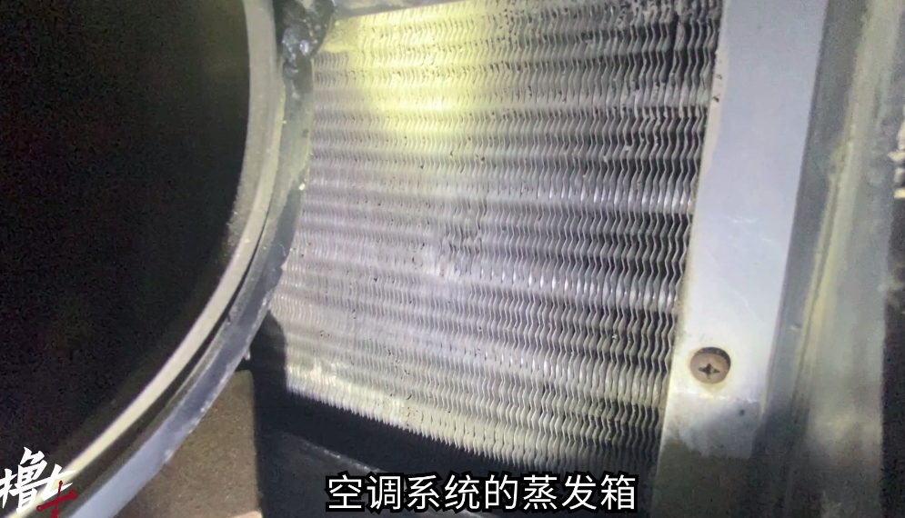 蒸发箱的散热片上就已经有肉眼可见的污渍了。