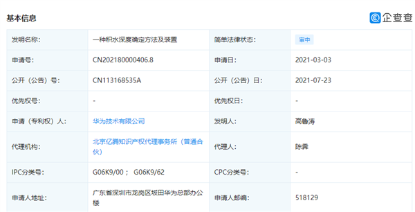 华为有一款全新的专利被曝光,名称是《一种积水深度确定方法及装置》,申请人是华为技术有限公司,申请日期是2021年3月3日。根据华为申请的专利内容显示,具体的测量方法为,在积水区域的预设距离,获取积水道路的图像信息,然后对该图像信息进行分析处理得到积水边缘的空间位置,再获取道路坡角和通过一定策略判断确定积水区域的最大水深处对应的道路位置。最后,根据积水边缘的空间位置、道路坡角、最大水深处对应的道路位置,确定积水区域的最大积水深度。