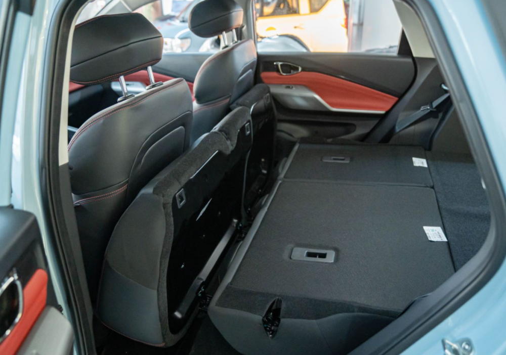 但对于Valli,最引人关注的无疑是它的“复式大平层”。Valli本身的空间表现确实也比较不错,它的车长是4685mm,轴距是2700mm,加上尾部的独特造型,使得车内空间非常大,特别坐在后排,一个1米8的大高个坐进来都还有充沛的空间,可以轻松翘起二郎腿。而车内的大平层则是Valli后排放倒后与后备厢形成的一个纯平的空间,其空间容积也达到了1620L,就像一张简单的双人床,可以轻松躺下两个成年人,旅程中找不到酒店也不用怕。如果家庭出行,这个大空间还可以在休息的时候作为一个休闲的空间。