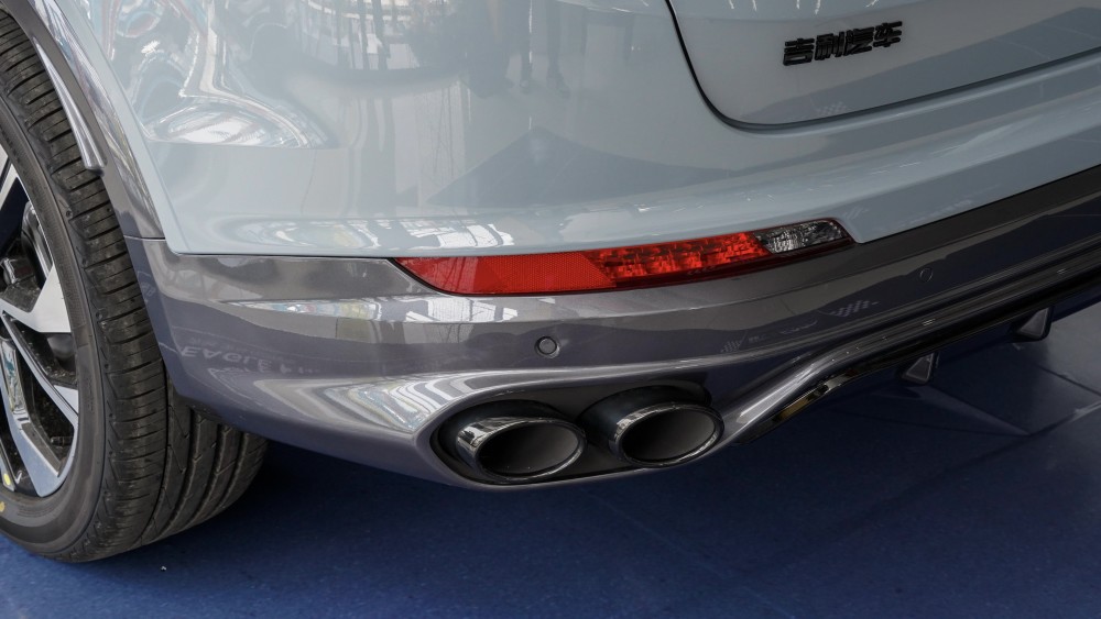 车尾部,星越S提供两套方案。低配版采用双边单出方形排气,视觉上倾向于时尚化。高配版采用双边四出熏黑排气,视觉上运动属性更加明显。