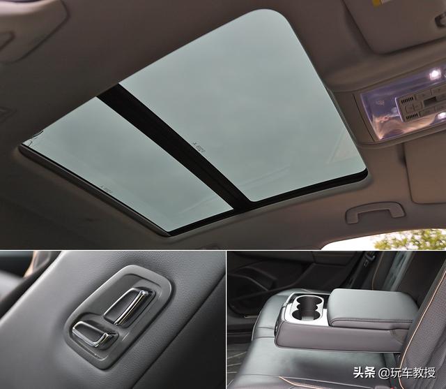 除此之外,试驾车还配备了老板键、后排中央扶手,当然还有与辉昂同款的全景大天窗。