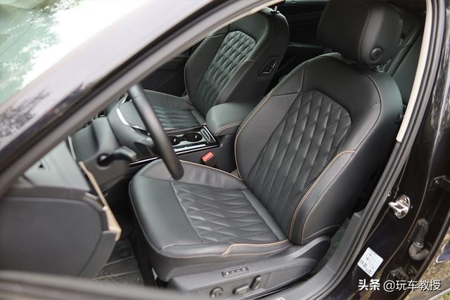 在乘坐方面,全新帕萨特对前后排乘客的照顾都很到位,宽大的座椅采用了柔软的填充物,并且采用了手感细腻的粒面打孔真皮包裹,坐上去软软的就如同家里的大沙发般舒适。为了彰显尊贵感,座椅还采用了菱形渐变格纹搭配缝线处理,工艺上向更高级的辉昂看齐。