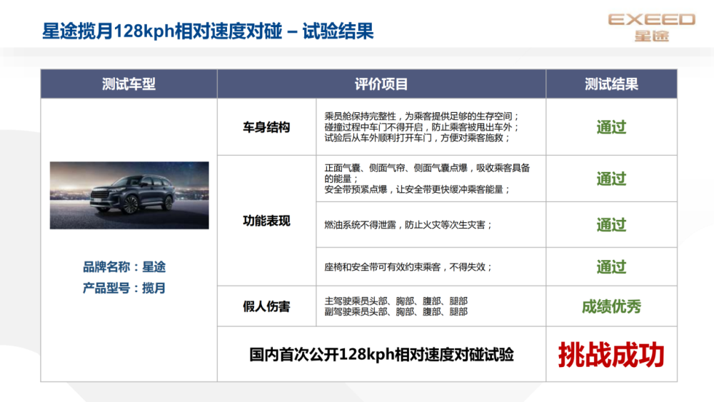 星途揽月不但公开了碰撞成绩,而且是在近百家媒体公开报道和直播下进行公开测试。