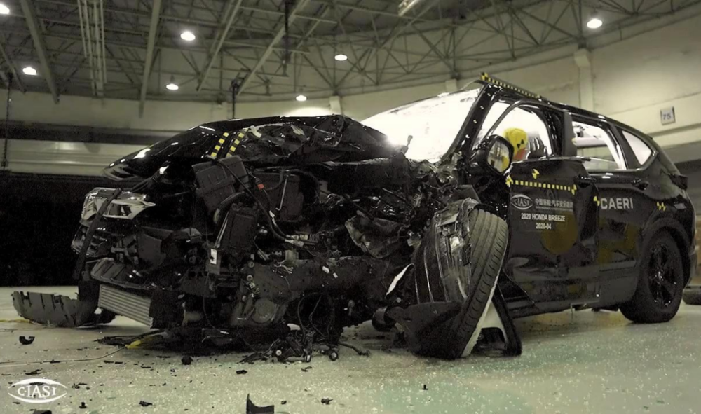 4.此前曾经让帕萨特和皓影折戟沉沙、A柱当场断裂的碰撞就是“25度偏置碰撞,时速64km/h”。