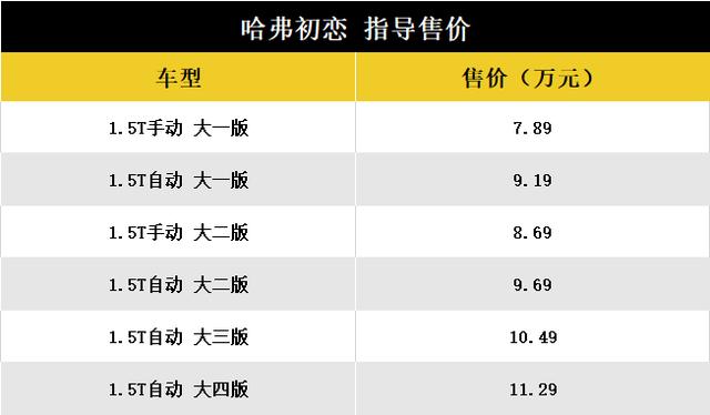 1月11日晚,哈佛品牌宣布旗下哈佛初恋车型正式上市,共推出了6个版本车型,厂商指导售价区间为7.89万-11.29万元。新车定位为紧凑级SUV,目标成为年轻人生活中的第一辆车。